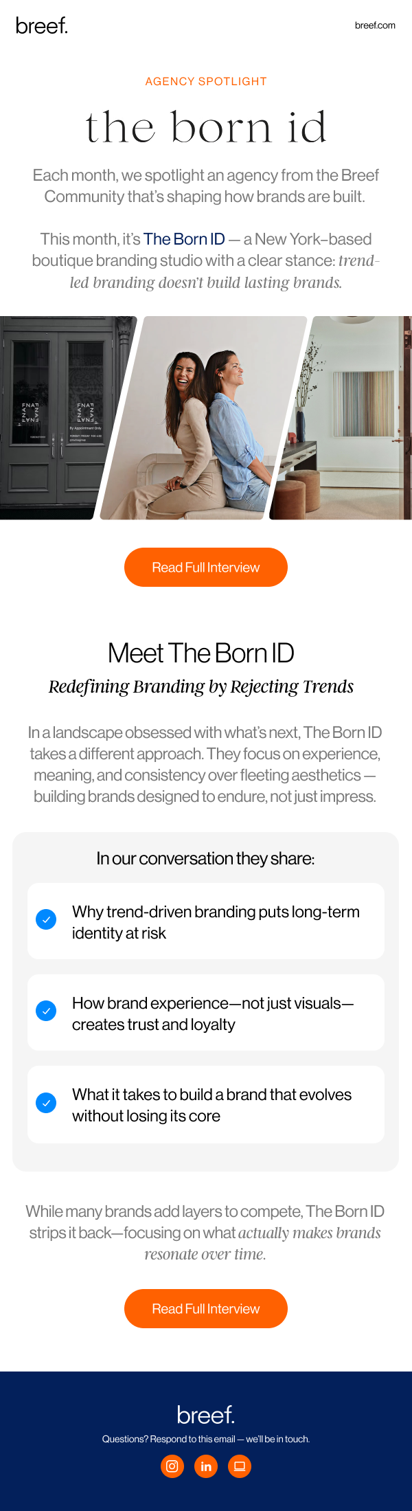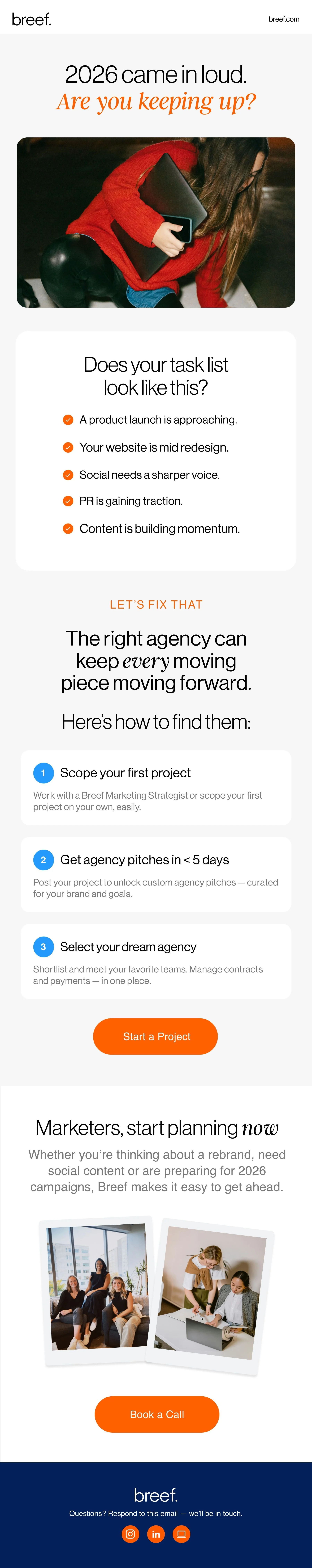 Breef is the leading platform for brands to find their next agency. They’ve streamlined the process from start to finish, making it easy to build better marketing teams with the right agencies.